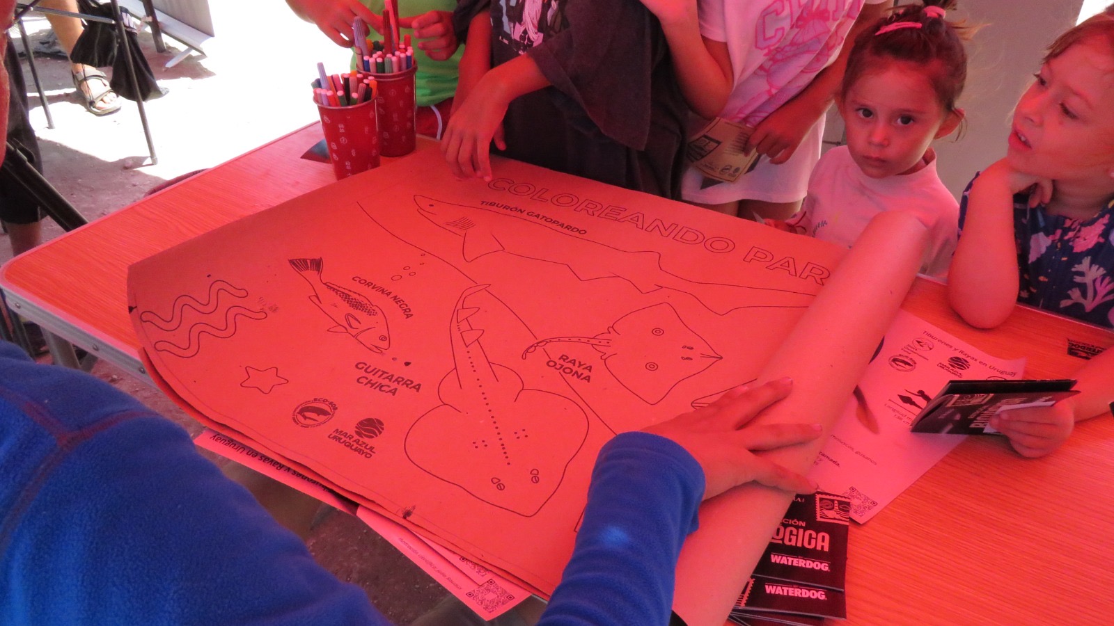 Uno de los espacios centrales de esta acción fue la carpa de sensibilización instalada durante el torneo (Campamento Biología), donde se compartieron materiales educativos y se promovió la reflexión sobre la conservación de especies marinas. Para reforzar este mensaje, contamos con ilustraciones de Julia Rouaux, utilizadas en diversos materiales diseñados específicamente para sensibilizar sobre la biodiversidad de tiburones y rayas en la región.